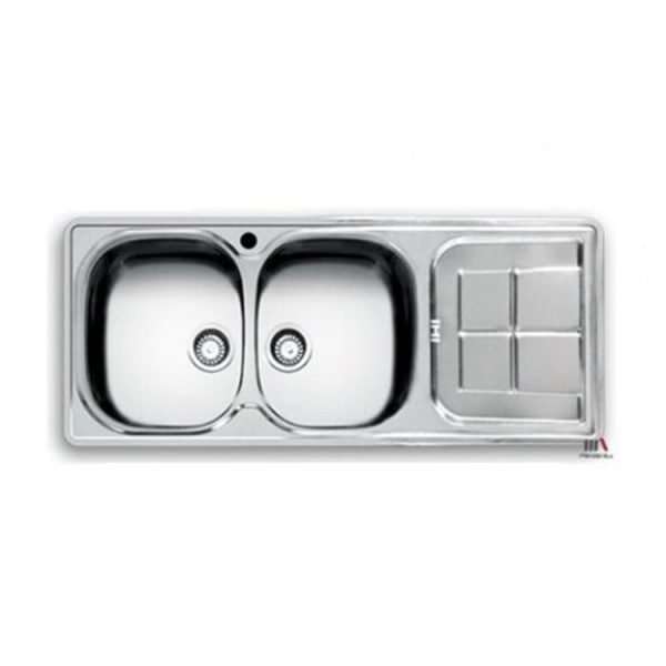 سینک با ابعاد 120 در 50 سانتیمتر و به طور کلی با نمای ظاهری مستطیل شکل جهت نصب توکار در کابینت های مختلف تولید شده است که در نهایت زیبایی و جلوه خاصی دارد برای ساخت بدنه سینک از جنس استیل مرغوب و باکیفیت استفاده شده است و با طراحی شیک و متفاوتی که دارد مناسب برای آشپزخانه های مدرن و کلاسیک می باشد. جنس مناسب استیل سبب می شود که پس از گذشت مدت زمان مورد استفاده از سینک، زیبایی و شفافیت آن به شکل مطلوبی باقی بماند.این سینک دارای دو لگن عمیق با اندازه ای مشابه می باشد که زیبایی ظاهری محصول را دو چندان جلوه می دهد و امکان شستشو و آبکشی را به صورت جداگانه برای افراد فراهم می کند. هر یک از لگن های این سینک دارای دریچه تخلیه آب می باشد که مانع از جمع شدن آب درون لگن ها می شود و موجب شستشوی راحت تر ظروف و انواع مواد غذایی می شود. با توجه به این که محل قرارگیری شیرآلات تاثیر بسزایی در دشواری و سهولت شستشوی انواع مواد غذایی و ظروف برای افراد دارد، طراحی برای نصب شیرآلات بر روی این سینک با ظرافت هر چه تمام تر انجام شده است و محل قرارگیری شیرآلات بین دو لگن می باشد که امکان نصب شیرآلات مختلف بر روی آن وجود دارد.